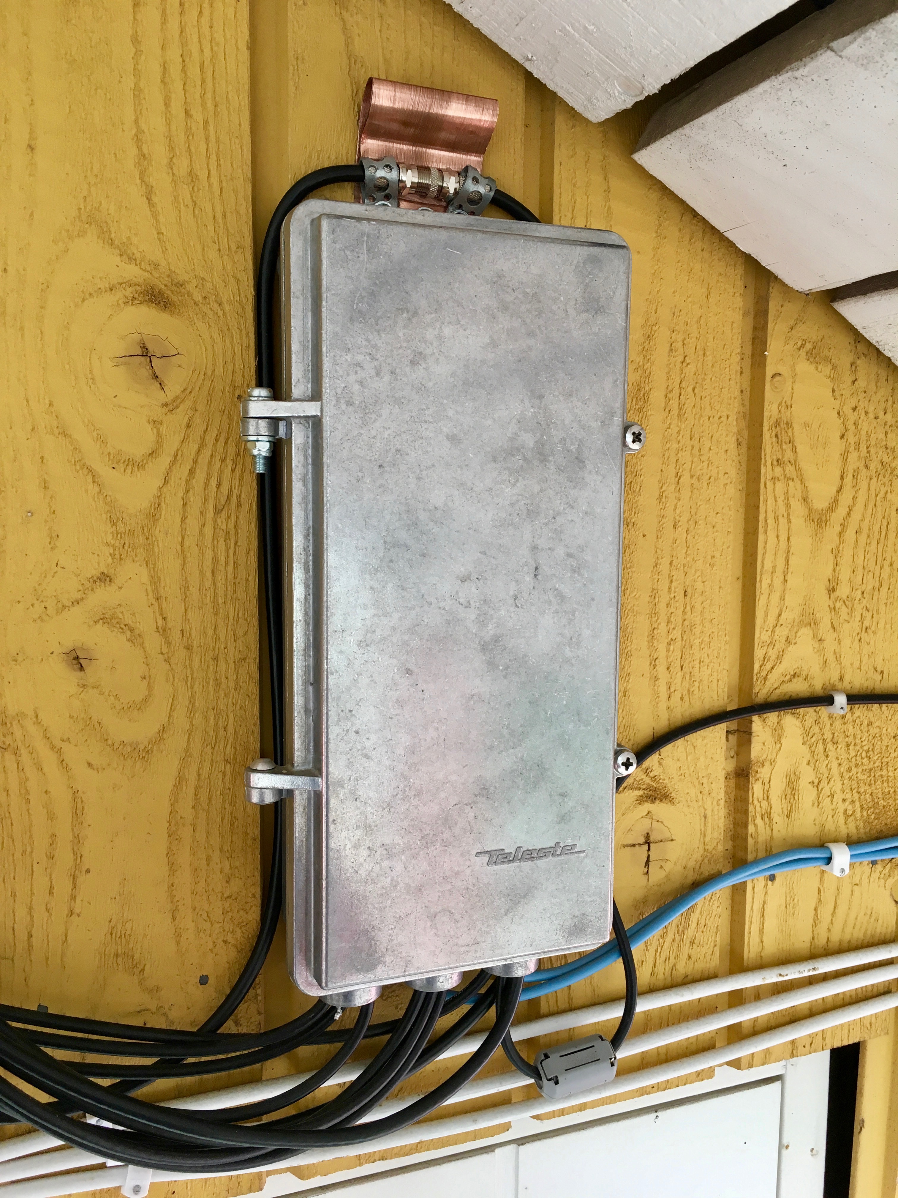 Grounding cable runs from each point to the LNA enclosure located in the balcony and from there also to the enclosures of RaspberryPi's, Laptop computer and all the radio devices connected to the system.