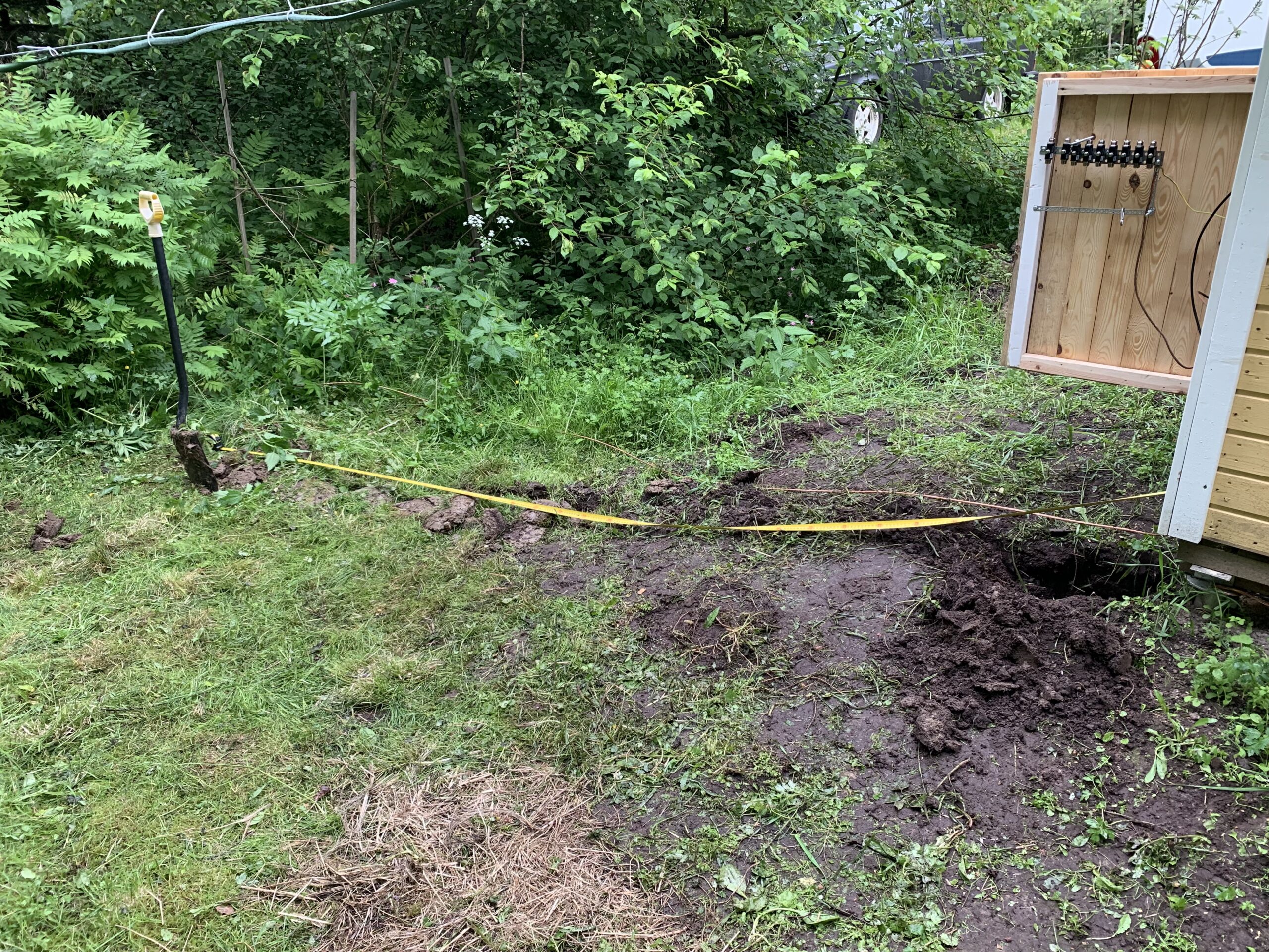 Then an idea was to buid a real shack out, next to the actual antenna mast and remove everything from the house. This would also help with the EMI that was present in the house.