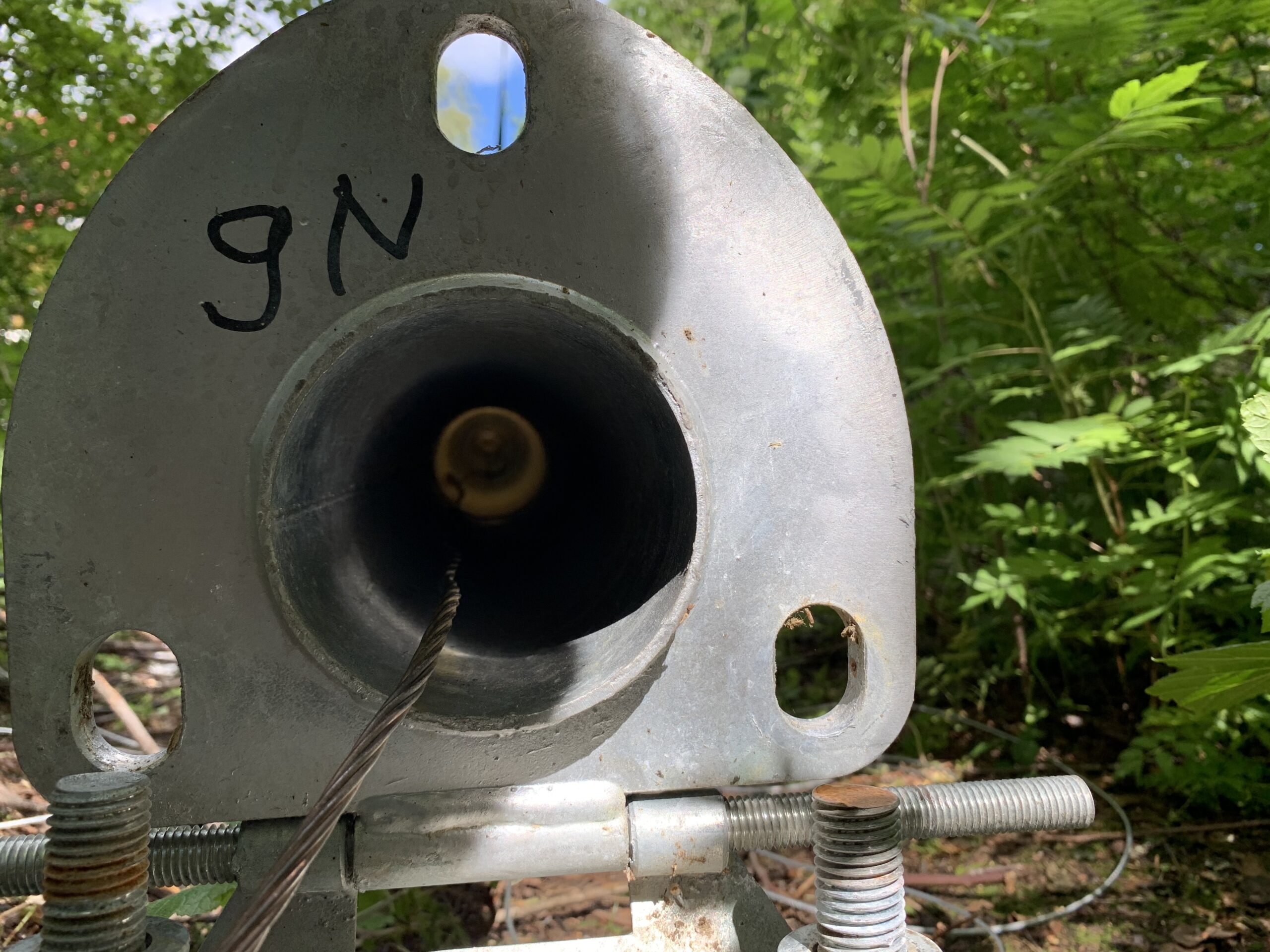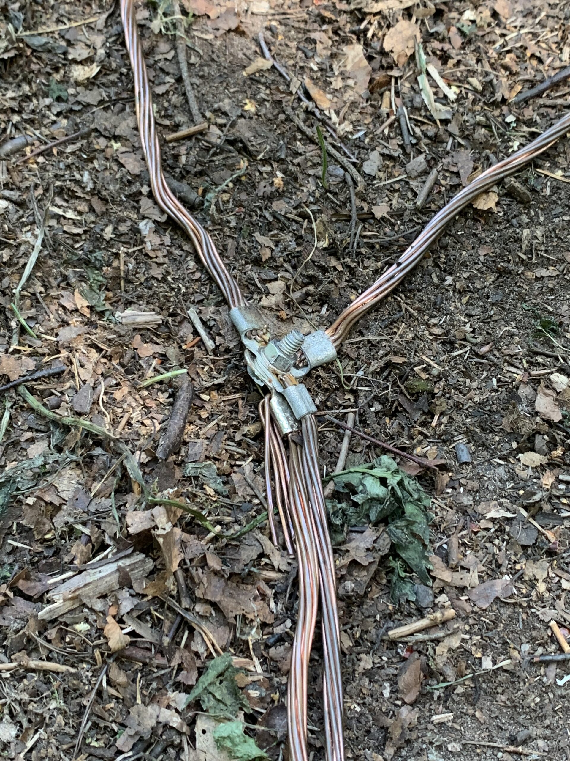 Power and network cable are installed inside a underground tubing, grounding copper wire is directly on the ground connecting all four poles of the cabin and also the antenna mast to the same common ground with all the antennas, radios and all other low voltage devices used in the cabin (lights, security cameras and so on).