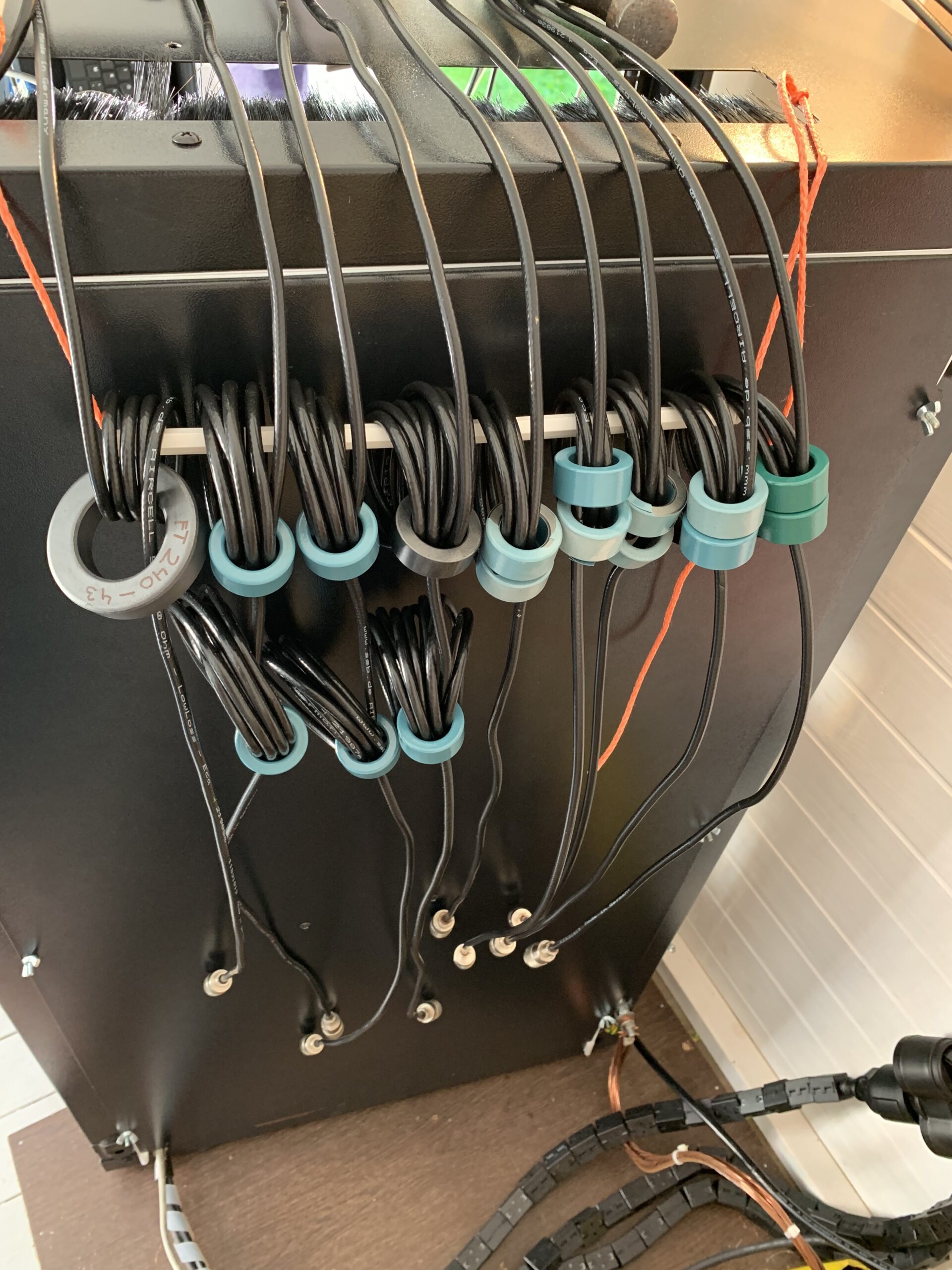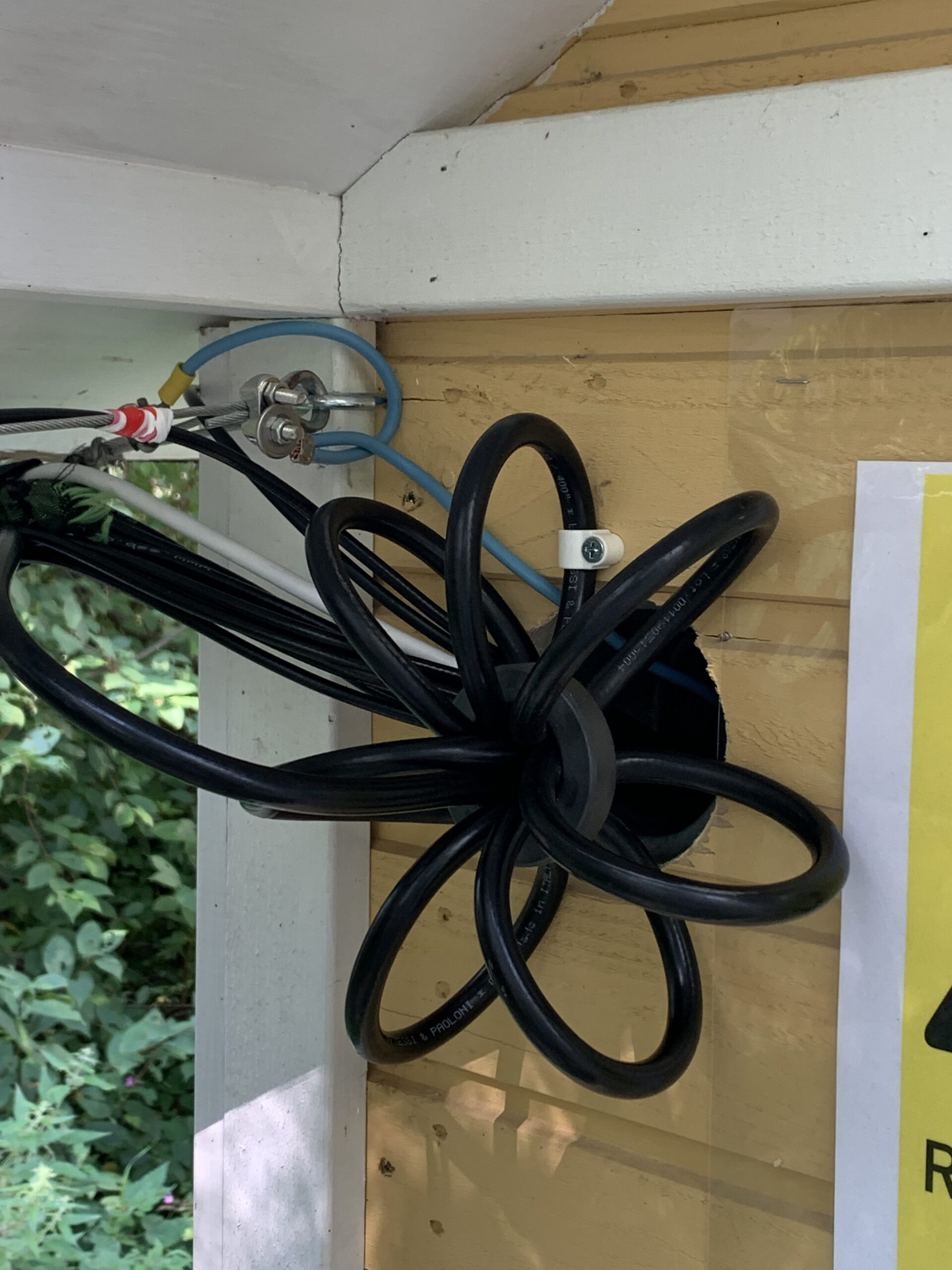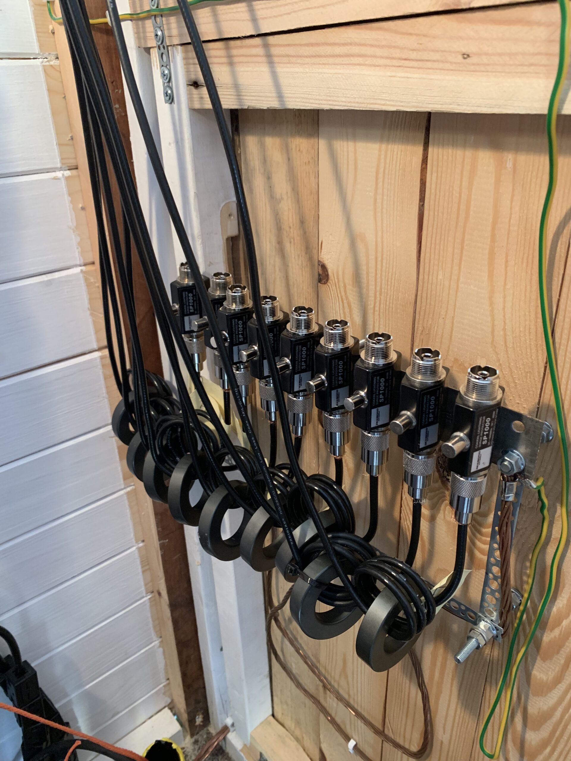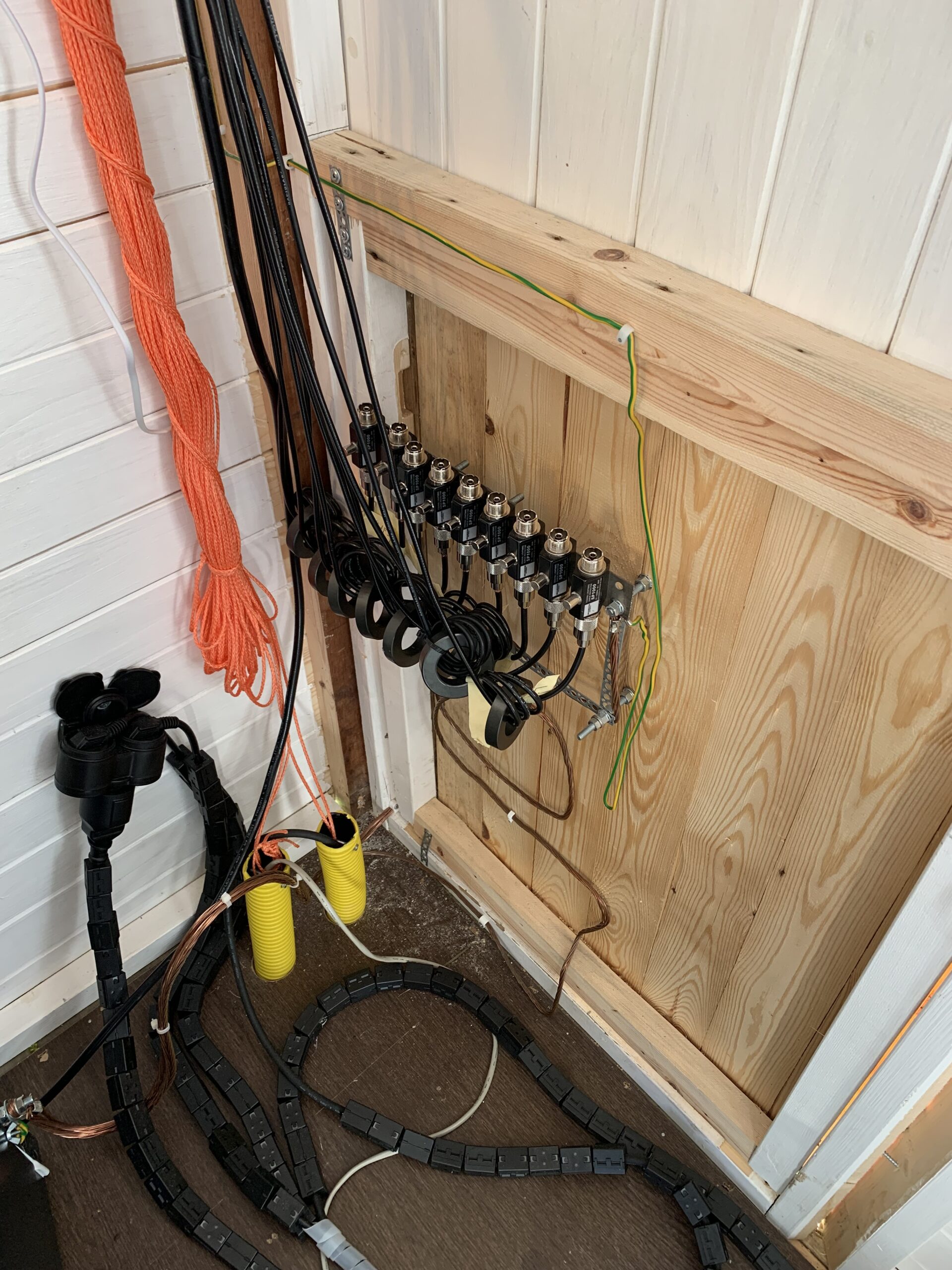 Third phase, antenna cabling. Currently there are fifteen different antennas connected to the system. Some of them requires lightning protection, some does not. Some are used for Ghz bands, some for VLF. All the antenna cables are protected at least with ferrite ring against RF interference, most of the antennas also with gas tube lightning protectors. Transmit antenna uses thick 10mm EcoFlex coaxial cable.